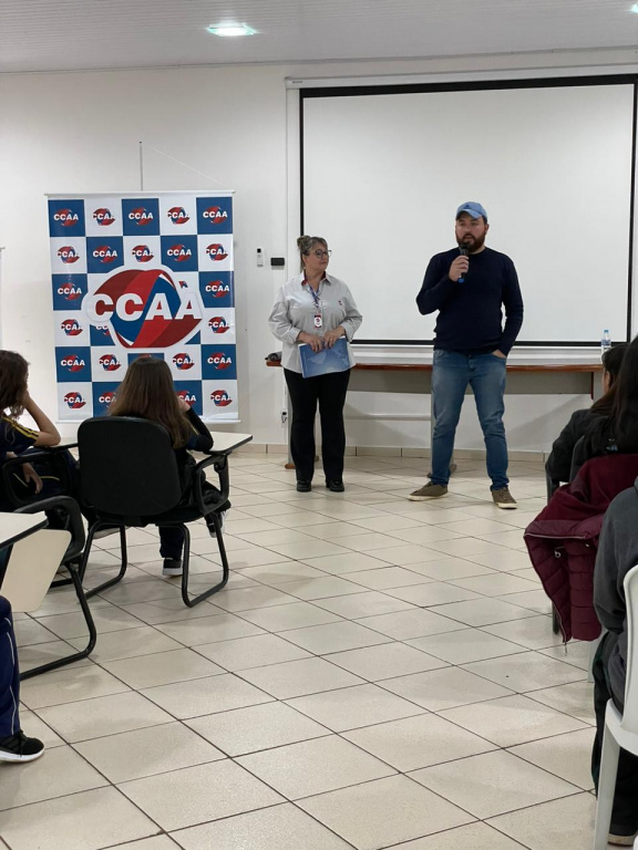 Na oportunidade também apresentamos o CCAA Escola de Idiomas patrocinador oficial do Concurso de Oratória que vai premiar os alunos campeões de cada categoria com uma bolsa de Inglês integral durante o ano todo de 2024.