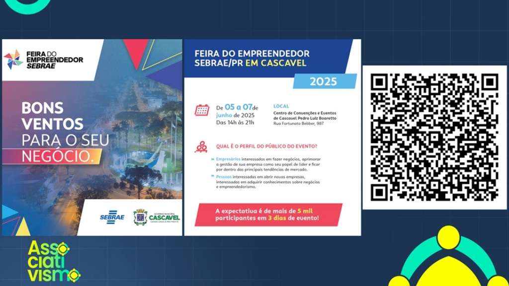 O evento terá ampla programação e é considerado um dos maiores do País no apoio a quem quer empreender. Em sua edição inédita no Oeste do Paraná, a Feira terá oficinas, palestras, rodadas de negócios, mentorias, orientações financeiras e atendimento especializado para micros e pequenas empresas.